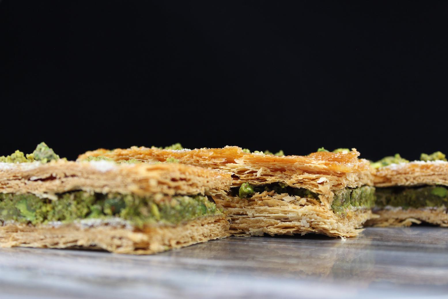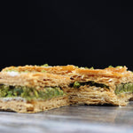 Experience the best of two worlds with our French Baklava. This exquisite creation combines the flakiness of French puff pastry with the richness of traditional baklava. Layers of buttery pastry are generously filled with a tantalizing blend of pistachios, aromatics, and sweet honey syrup. Indulge in the fusion of textures and flavors that will transport you to the heart of Mediterranean delight.